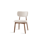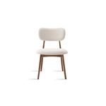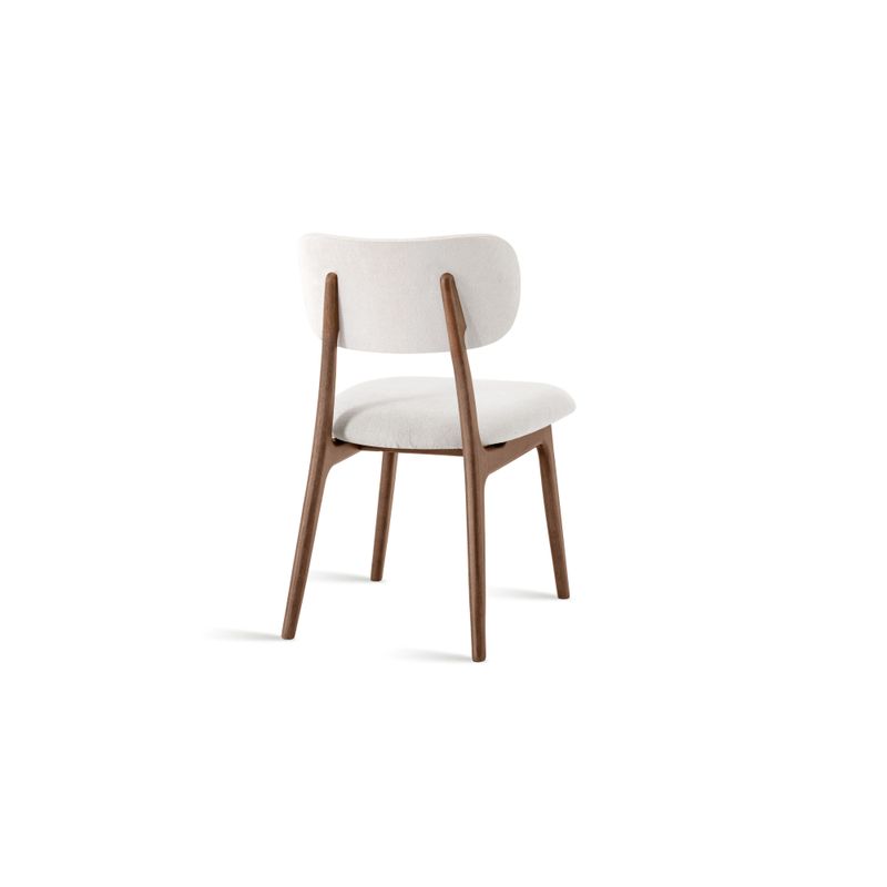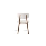 - Cadeira Claudia 02: Apresenta encosto estofado na frente e parte de trás laminada.