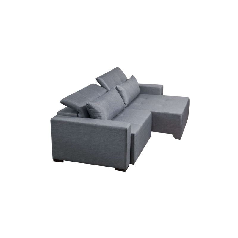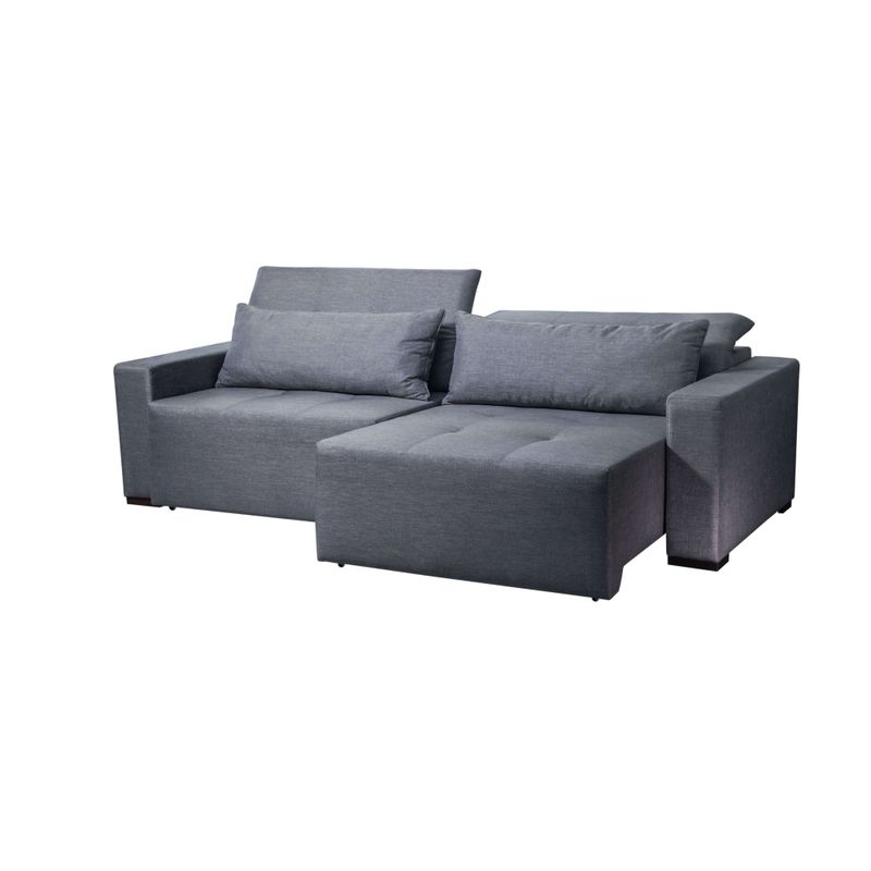 Detalhes- Sistema Retrátil e Reclinável: Permite ampliar a profundidade para até 1,60m, transformando o sofá em uma verdadeira chaise de relaxamento.